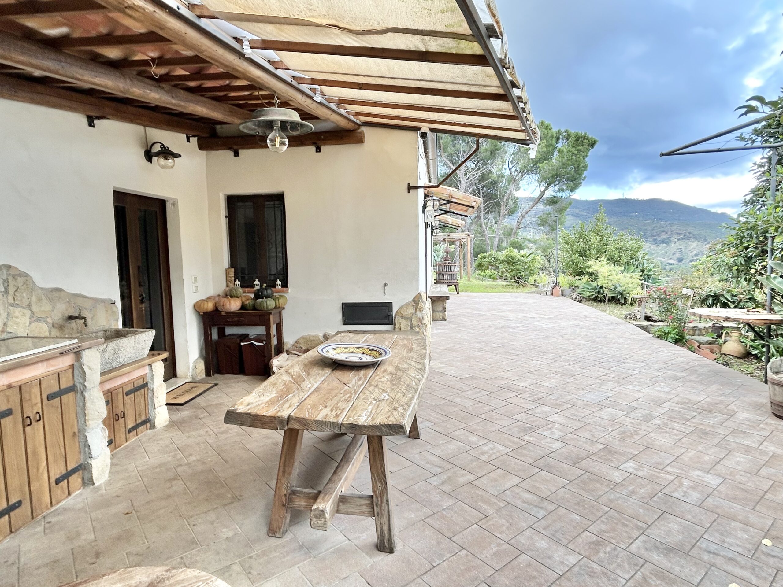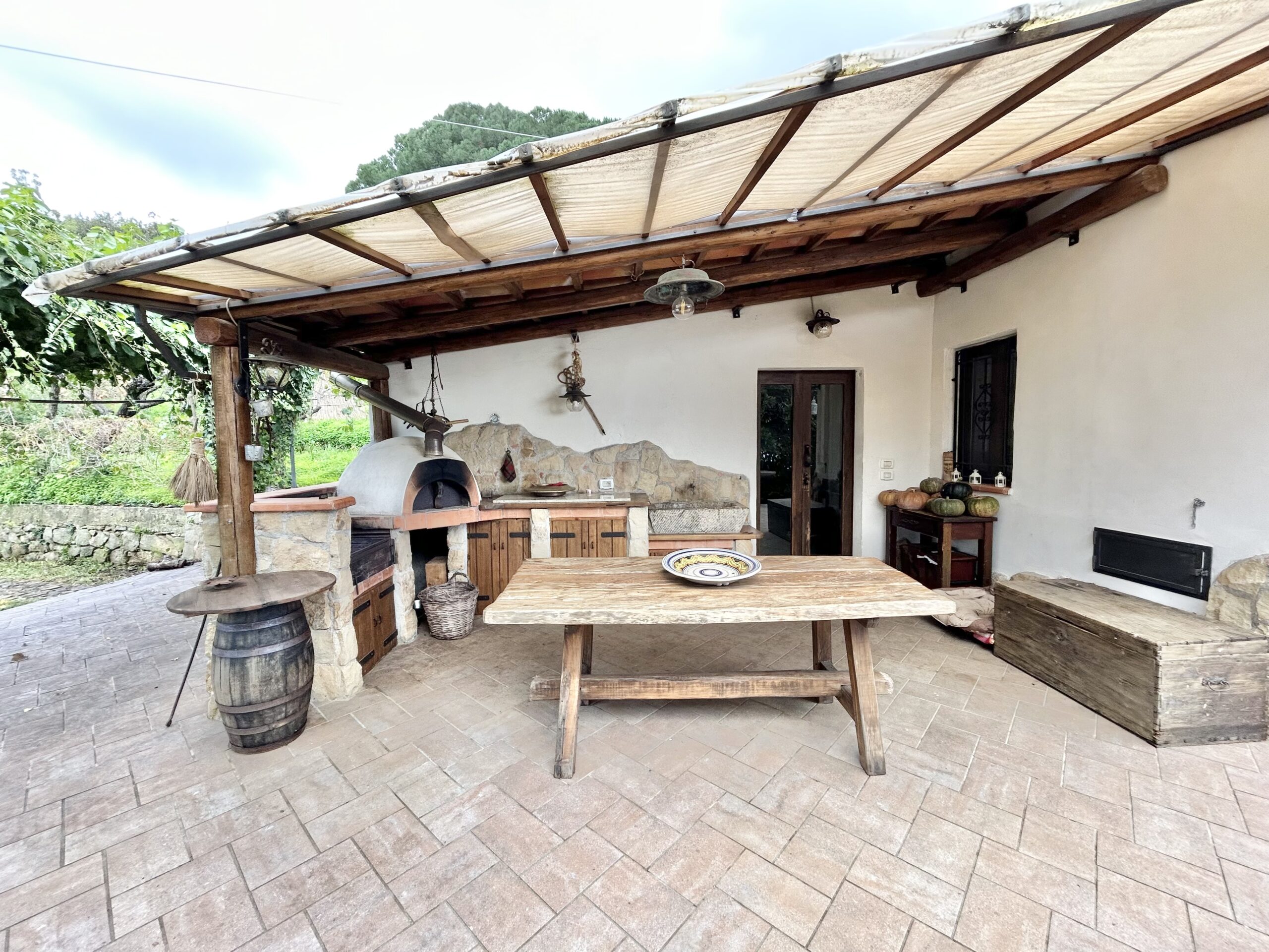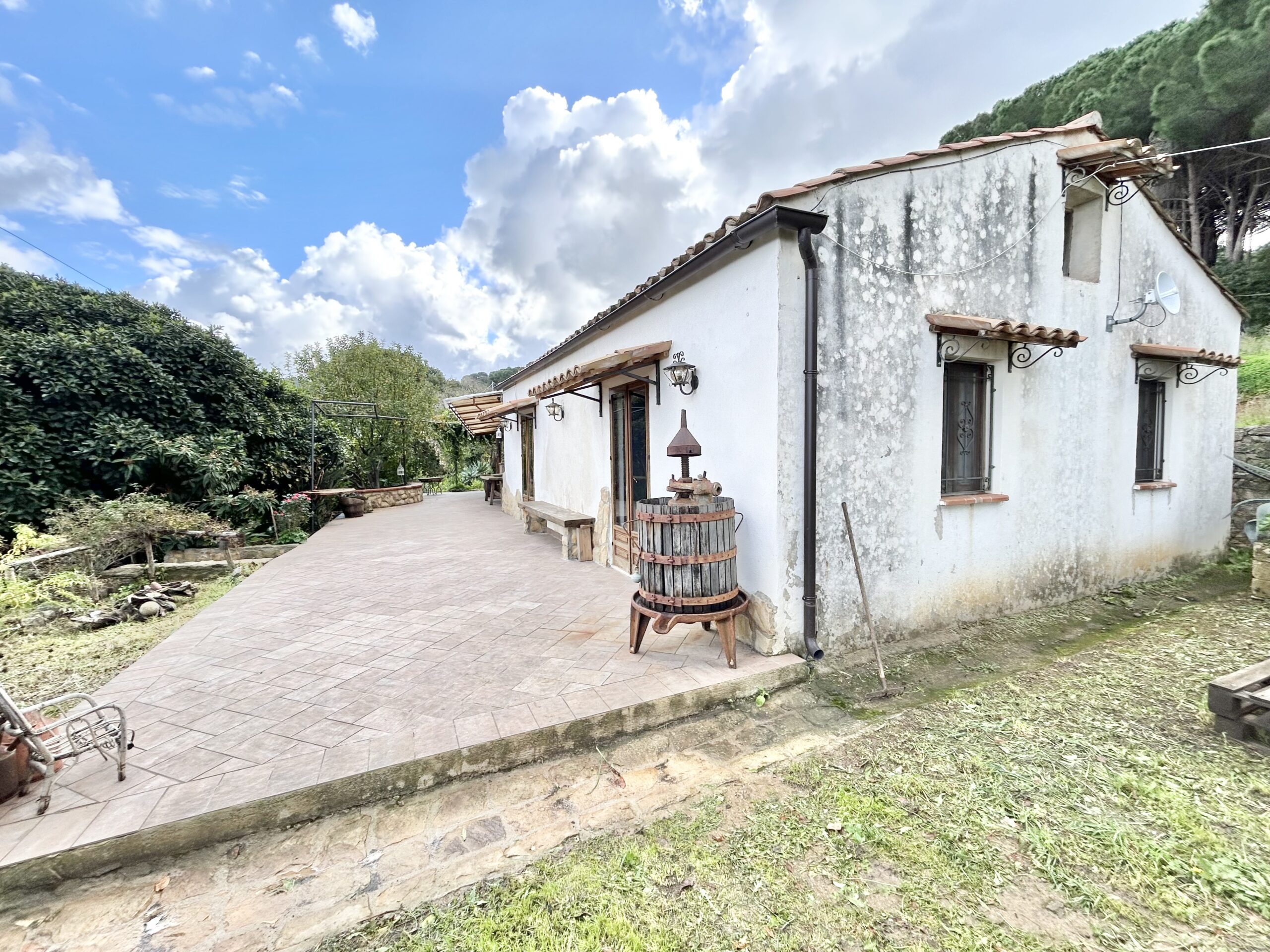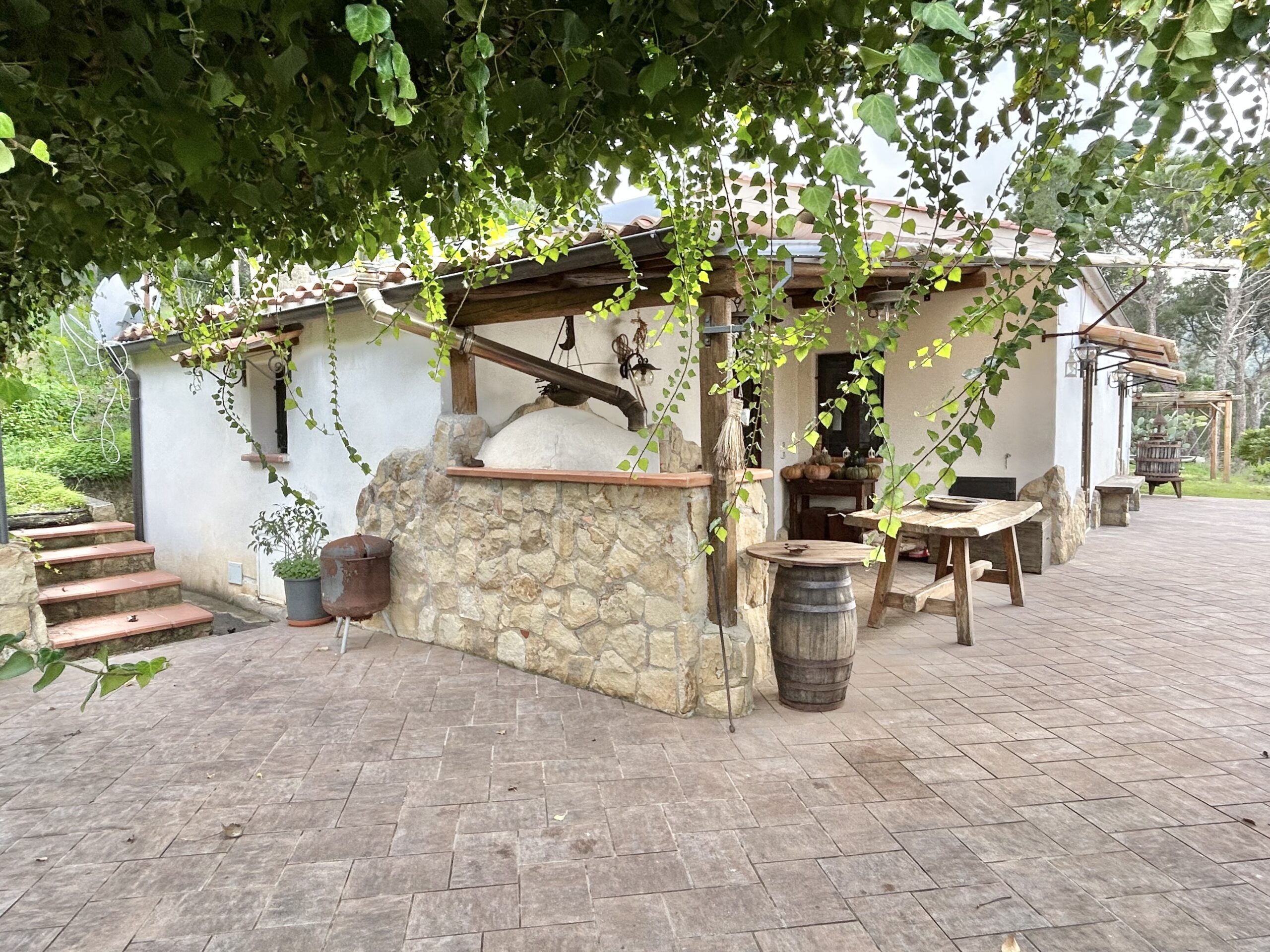 Nella tranquillità della campagna, ma a breve distanza dal centro abitato, questa proprietà comprende un abitazione principale in stile rustico, magazzini in pietra e oltre 12.000 m² di terreno agricolo con uliveto produttivo.