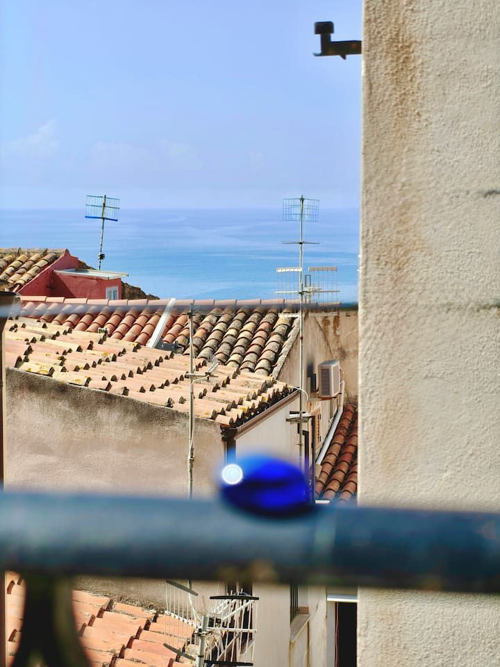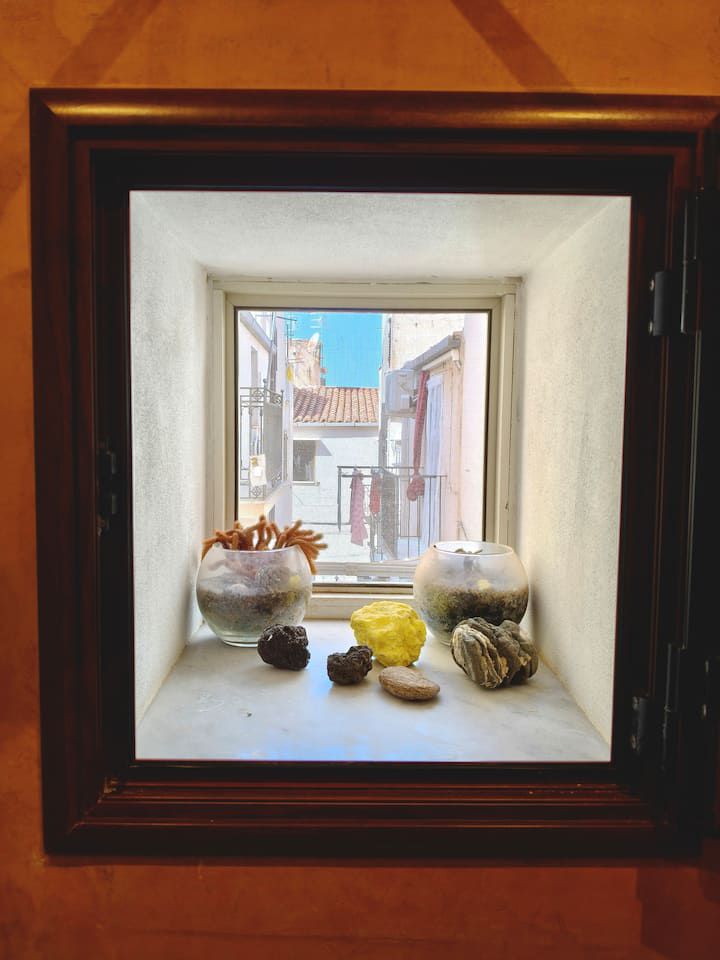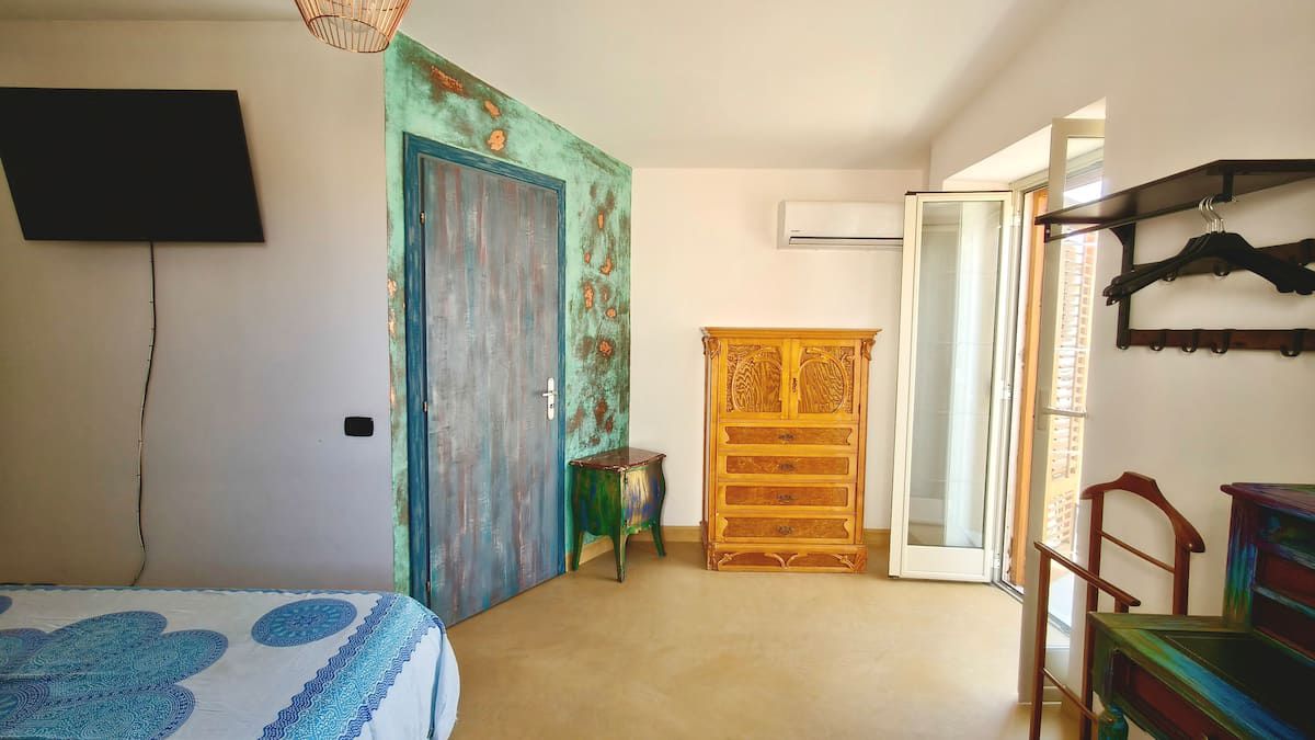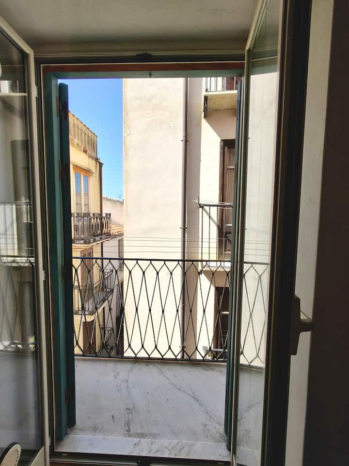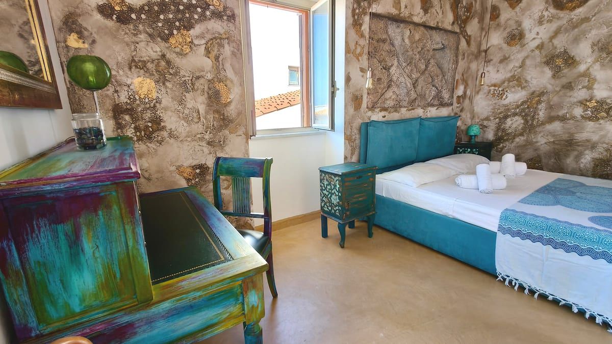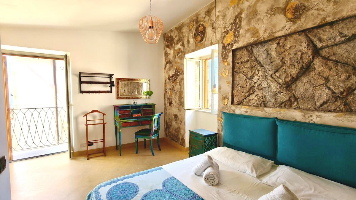Al secondo piano si trova la camera matrimoniale, luminosa e riservata, con balcone e aperture panoramiche che regalano viste caratteristiche sui tetti del centro storico delle torri della Cattedrale e, in alcuni punti, sul profilo del mare.
